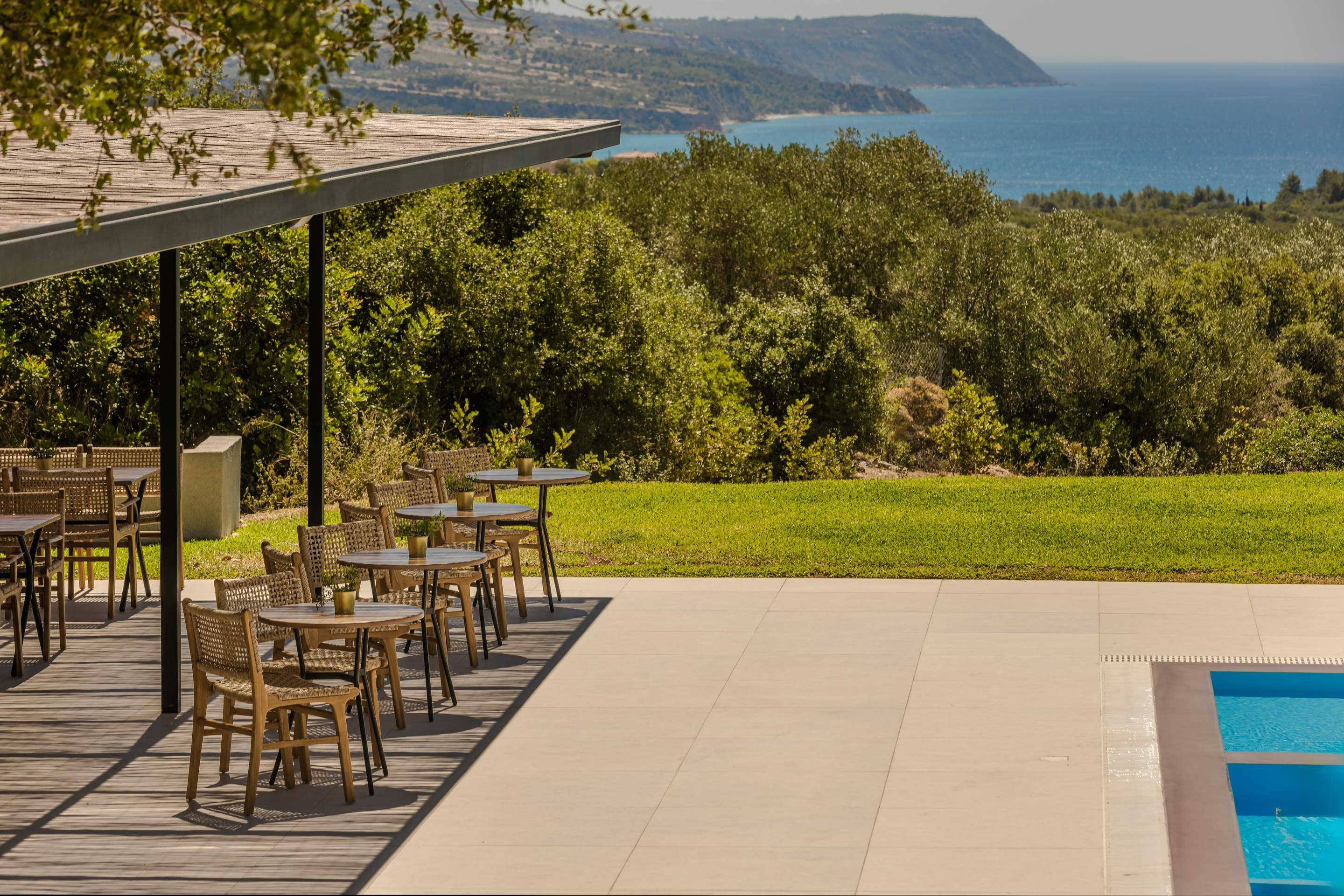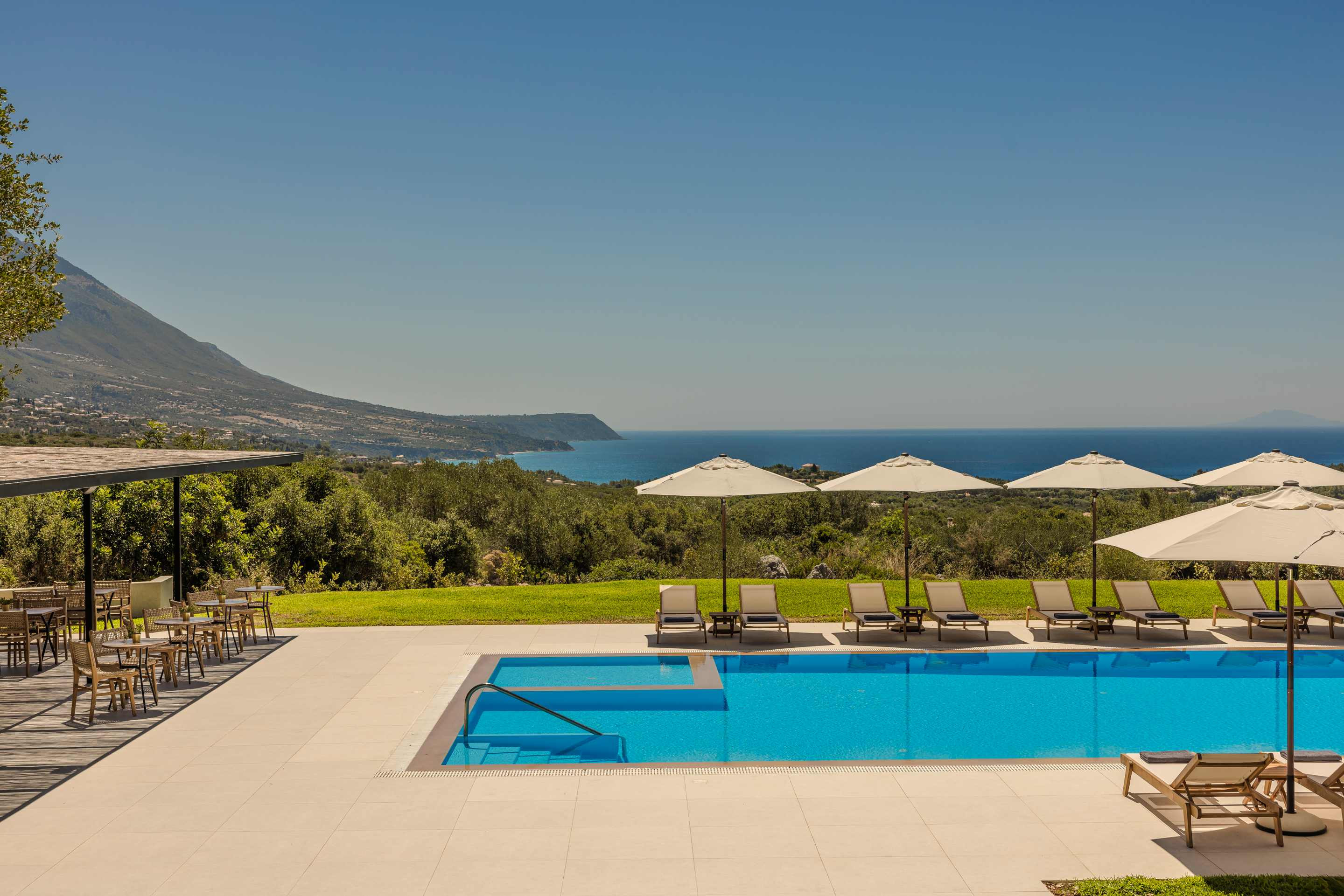 - Stunning sea views, large swimming pool and peaceful surroundings with olive trees